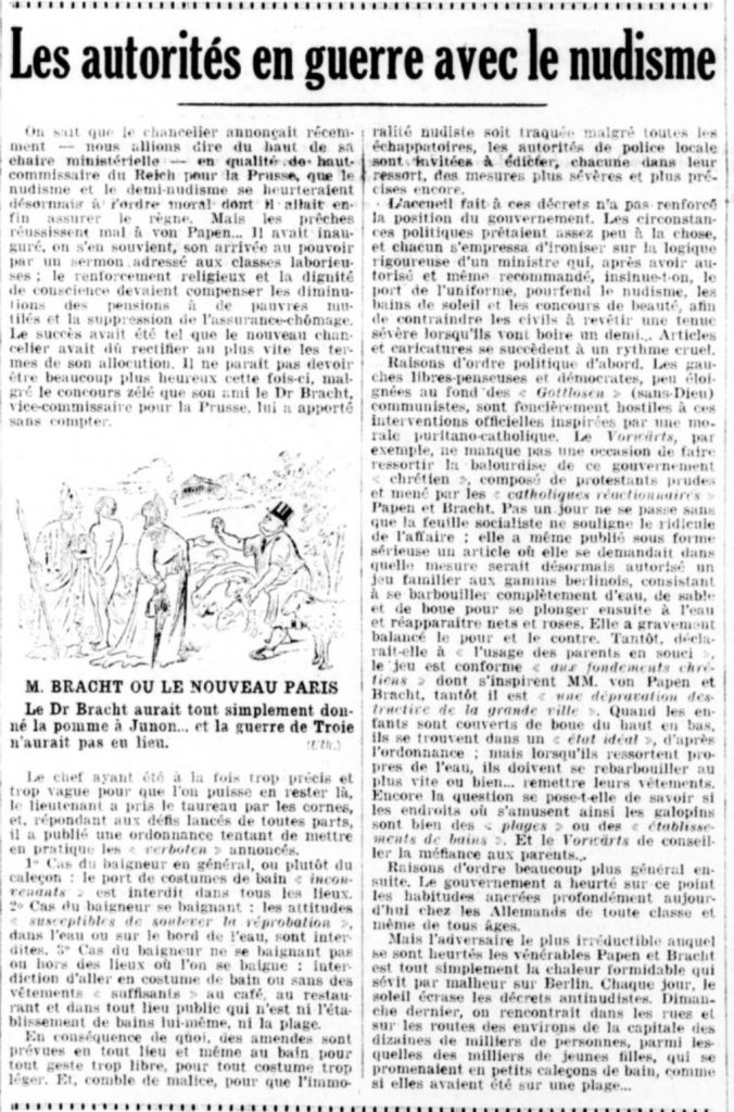 « Le naturisme supprime la pudeur naturelle de la femme et ôte à l’homme tout respect de la femme, portant de ce fait atteinte aux fondements de toute culture digne de ce nom ».