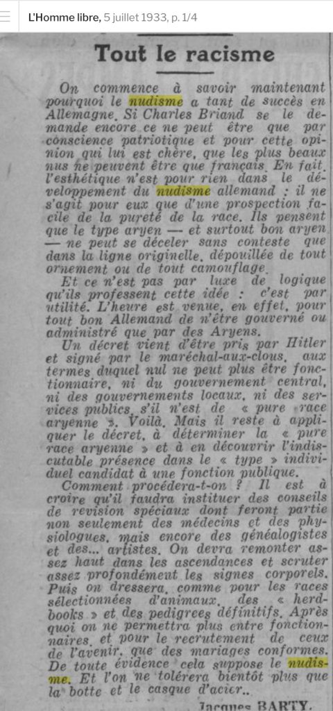 (Extrait de « 120 ans de naturisme à Marseille », p.122, auto-édition, 2021, Bruno Saurez )