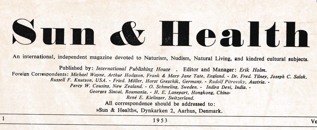 Sun and health – International edition Auteur/autrice de la publication :13marseilleman13 Publication publiée :14 novembre 2022 Post category:Magazines Commentaires de la publication :0 commentaire Sun and Health est une revue dirigée par Erik Holm, naturiste allemand, mais édité au Danemark. Il se veut être un magazine international avec des correspondants à travers le monde.Il aurait pu aussi bien être classé parmi les magazines allemands.Collection Bruno Saurez (don Imaginat) Numéro 1 - 1953 Numéro 3 - 1953 Numéro 4 - 1953 Numéro 5 - 1953 Numéro 7 - 1953 Numéro 10 - 1953 Numéro 11 - 1953 Numéro 12 - 1953 Numéro 13 Numéro 14 Numéro 15 Numéro 16 Numéro 18 Numéro 22 - Janvier 1955 Numéro 23 - Février 1955 Numéro 24 - Mars 1955 Numéro 26 - 1955 Numéro 34 Étiquettes: Angleterre, FKK, internationale, magazine, Naturisme Read more articles Article précédentFreies Leben Article suivantNaturisme Québec Vous devriez également aimer Naturist und welt 25 novembre 2024 Naturisme 7 octobre 2024 Revista mayores 3 novembre 2023 Laisser un commentaire Annuler la réponseCommentEnter your name or username to comment Enter your email address to comment Saisir l’URL de votre site (facultatif) Enregistrer mon nom, mon e-mail et mon site dans le navigateur pour mon prochain commentaire.